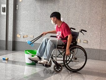 114學年度服務學習輔導組辦理「給愛一臂之力-身障闖關體驗」活動,對於身障朋友,我們常因不理解他們的處境,而造成彼此間的隔閡與誤解,若能多一點同理心,世界會更加寬廣包容。活動邀請伊甸社會福利基金會陳裕傑組長帶領解說各關關卡,關卡一共十關有:1.心裡有數(視障)2.平仄密碼(聽、語障)3.(伸出圓手)(手指上肢障)4.快掃旋風(下肢障)5.如意棒棒棒(其他障別(平衡))6.消費高手(視障)7.一指神功(手指上肢障)8 .單手萬能(上肢障)9.拼拼湊湊(視、聽障)10.說文解字(學習障礙)。安排保金一1班級志工擔任各關關主,以闖關遊戲體驗身障者的困境,引導學生設身處地為弱勢族群著想,透過簡單的關卡體驗,能讓學生親身感受身障朋友因障礙限制的不便與挑戰。