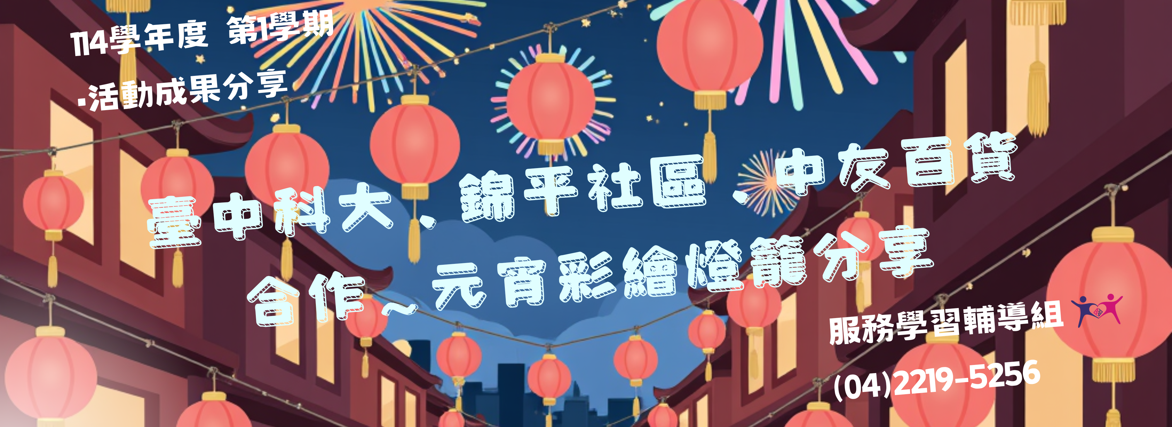 114學年度服務學習輔導組與錦平社區發展協會、中友百貨公司合作辦理「彩繪燈籠共創計畫『2026點亮永續-千人手繪燈籠』」活動,邀請錦平社區志工至本校,在教師及志工帶領下,國貿系一年級同學發揮創意繪製紙燈籠,也有他系志工小天使同學向錦平里辦公室預約進行彩繪,提供街坊及中友百貨展示,添加新年元宵佳節氣氛,實踐多元服務學習教育。